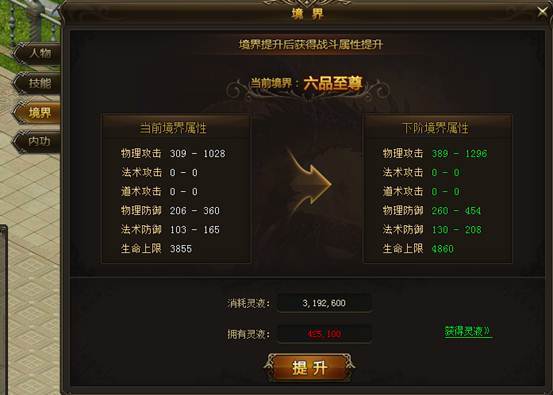 提升境界,可以获得大量的属性加成,而且个别强力的BOSS,只有玩家达到足够高的境界才有资格前往挑战。